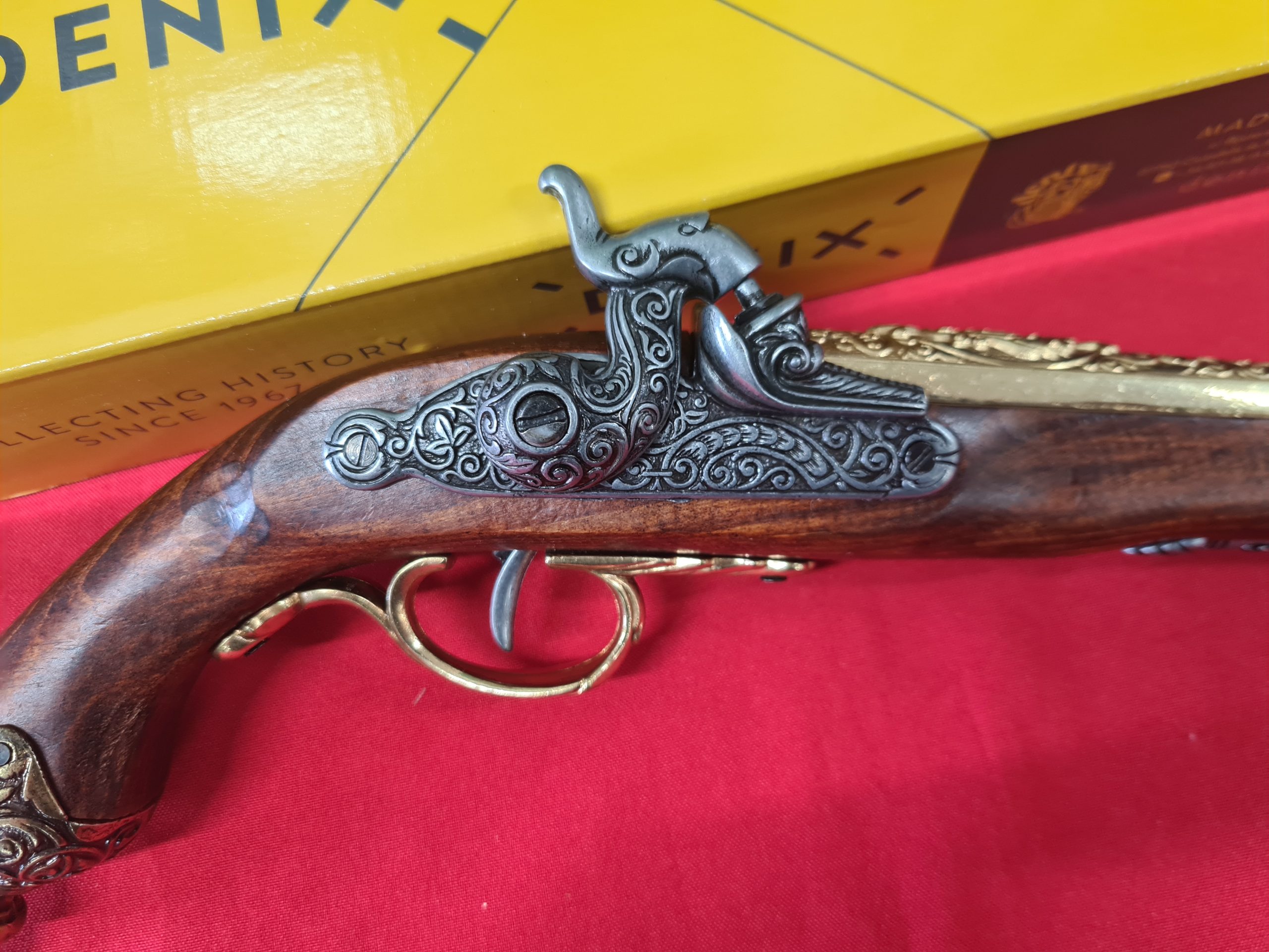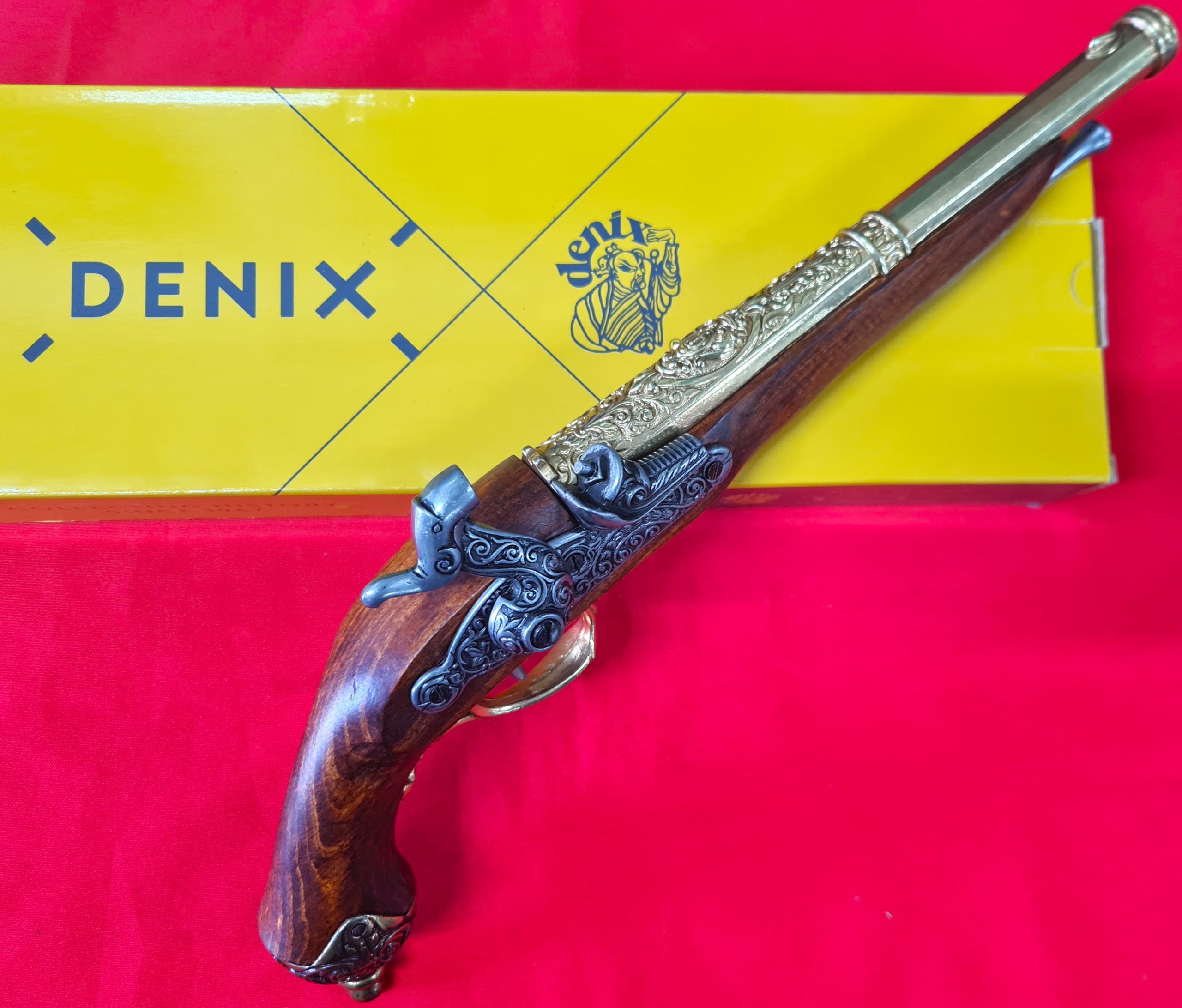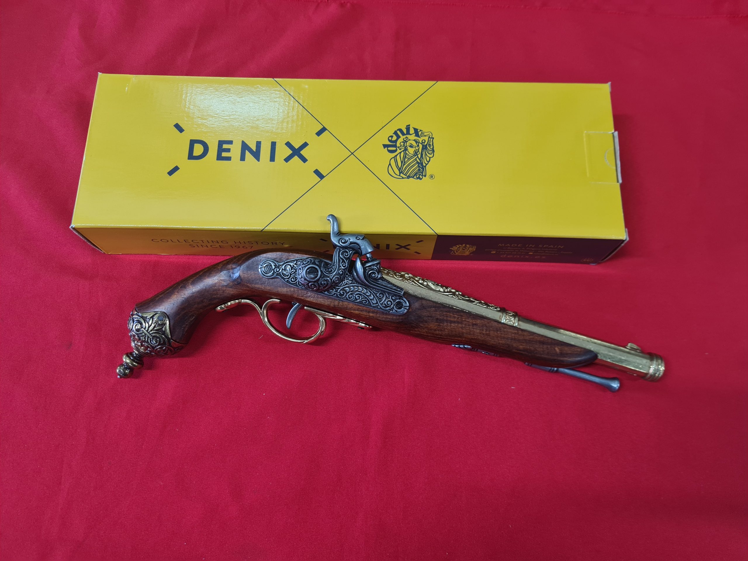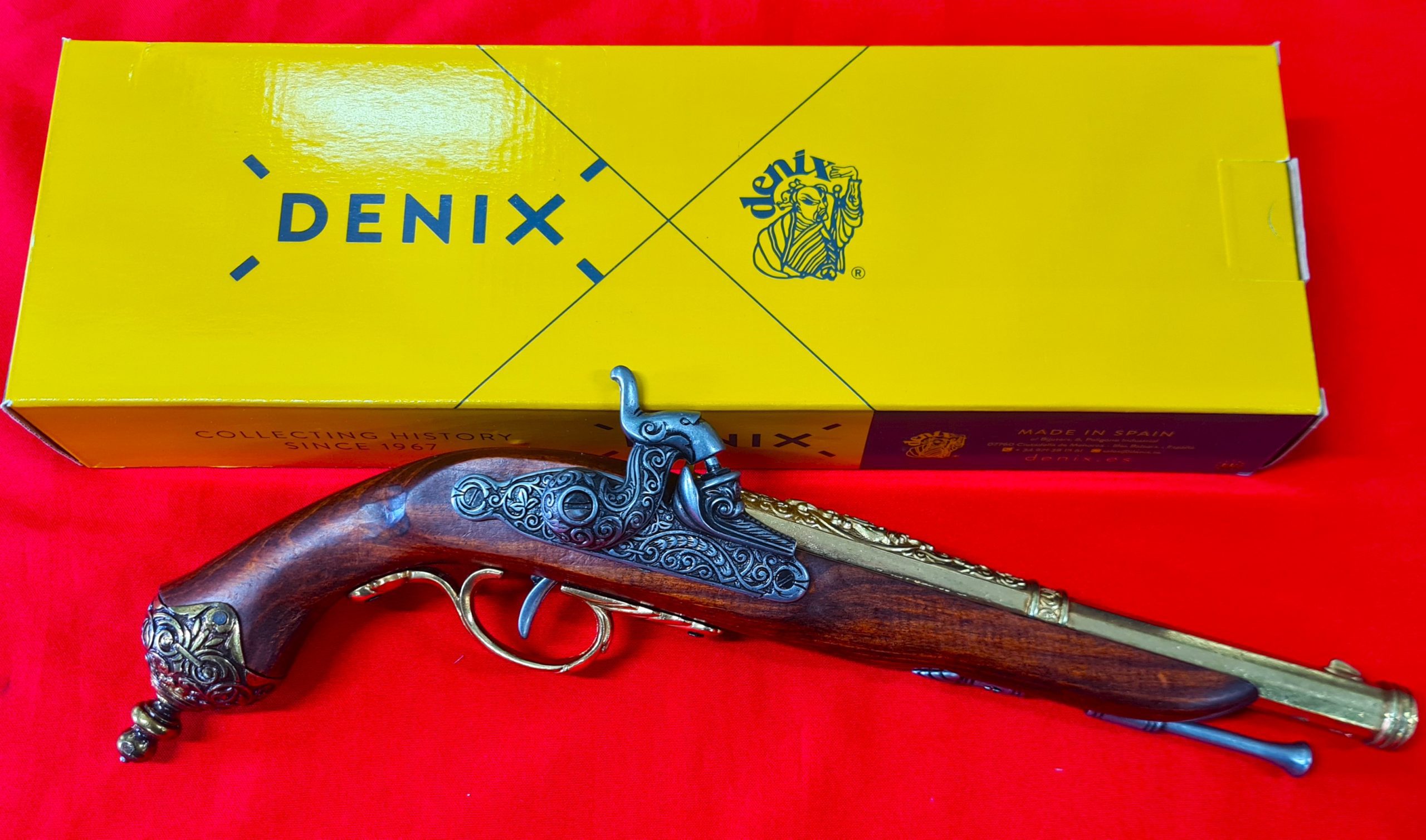 This item is a replica weapon. It is designed to resemble in shape, size, weight and basic functionality the firearm it replicates. It has basic working parts and or removable parts (check description) and is a genuine Kolser or Denix / Spanish made item. The replica comes in its factory card box.