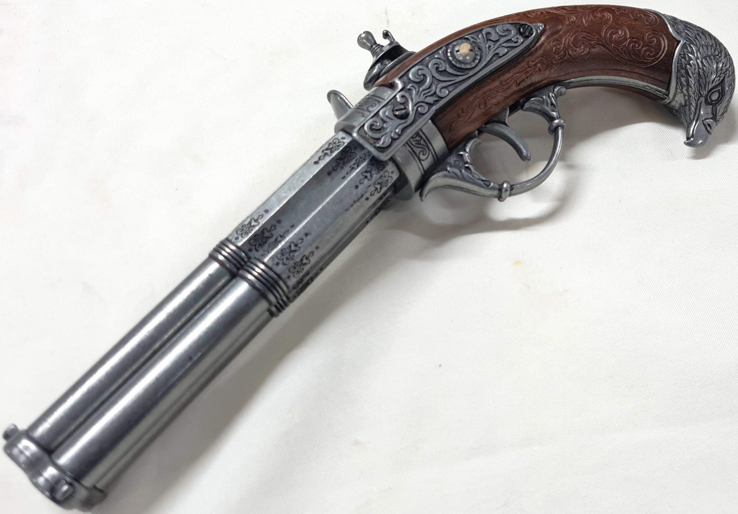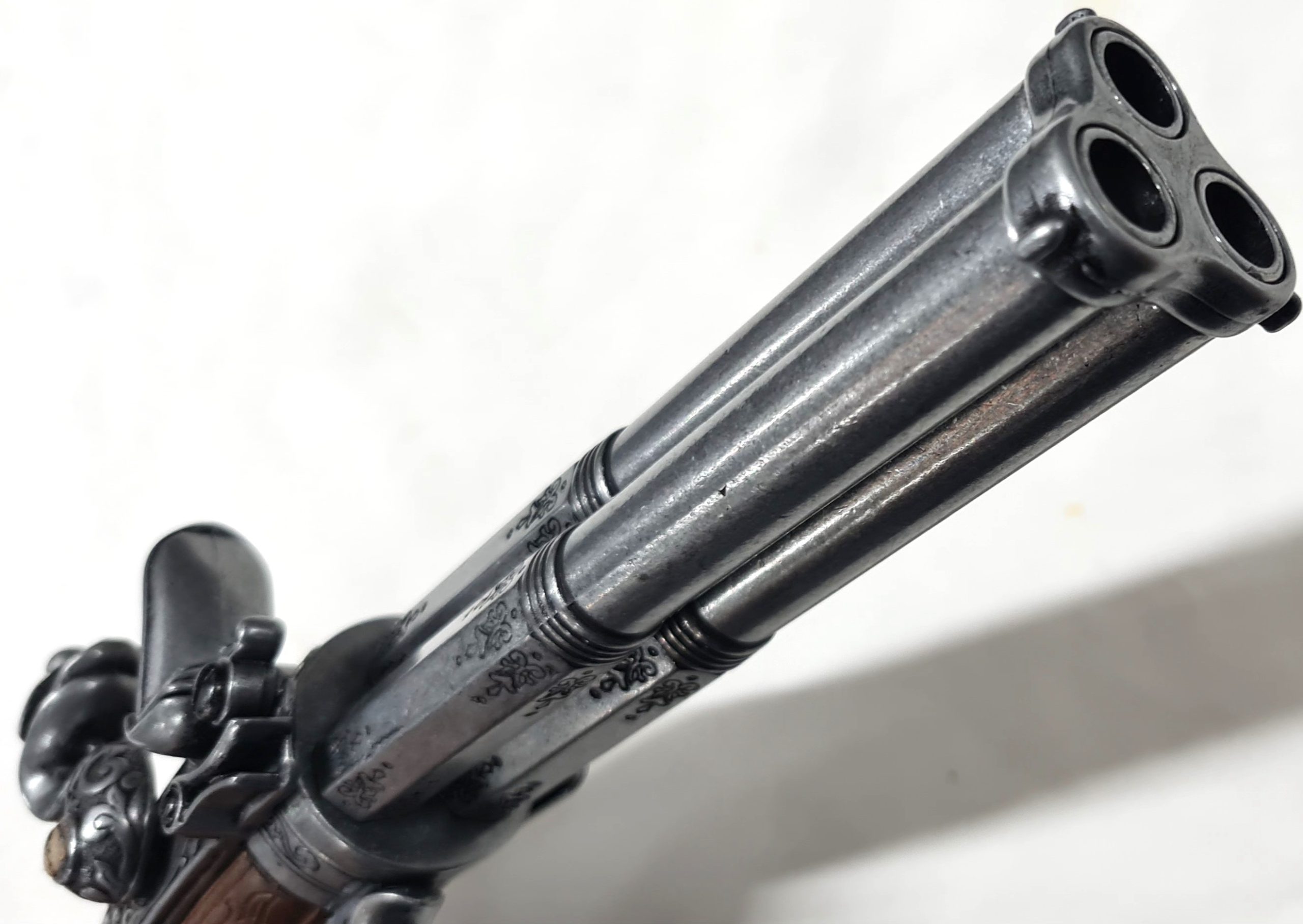 DENIX 1750 FRENCH FLINTLOCK PISTOL WITH TRIPLE MANUAL ROTATING BARRELS