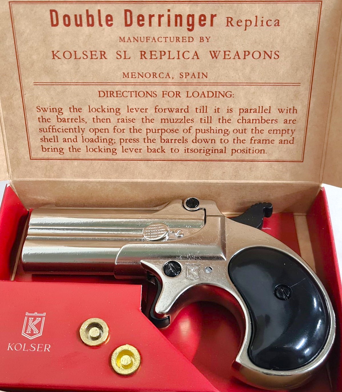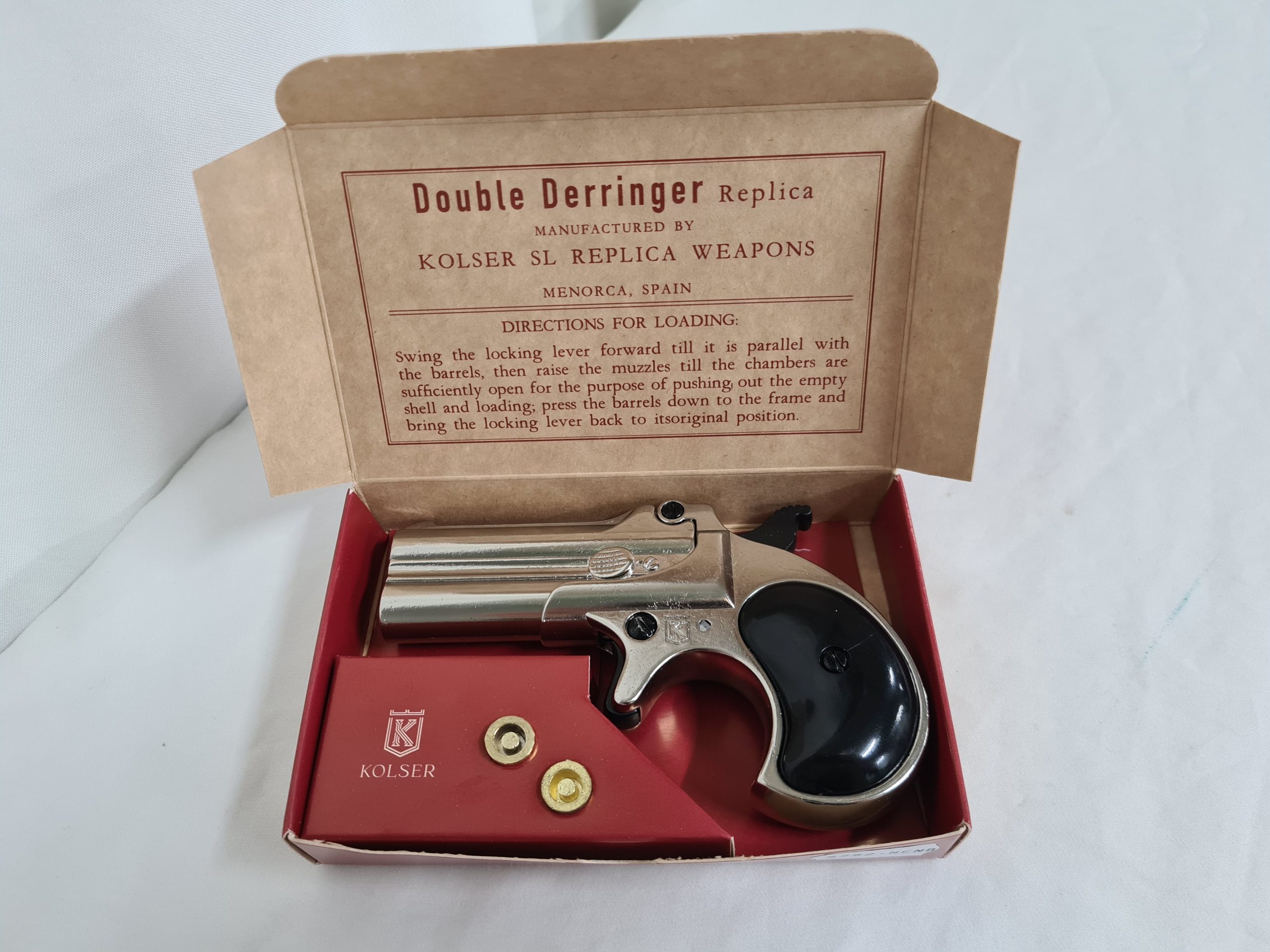 This item is a replica weapon. It is designed to resemble in shape, size, weight and basic functionality the firearm it replicates. It has basic working parts and or removable parts (check description) and is a genuine Kolser or Denix / Spanish made item. The replica comes in its factory card box.