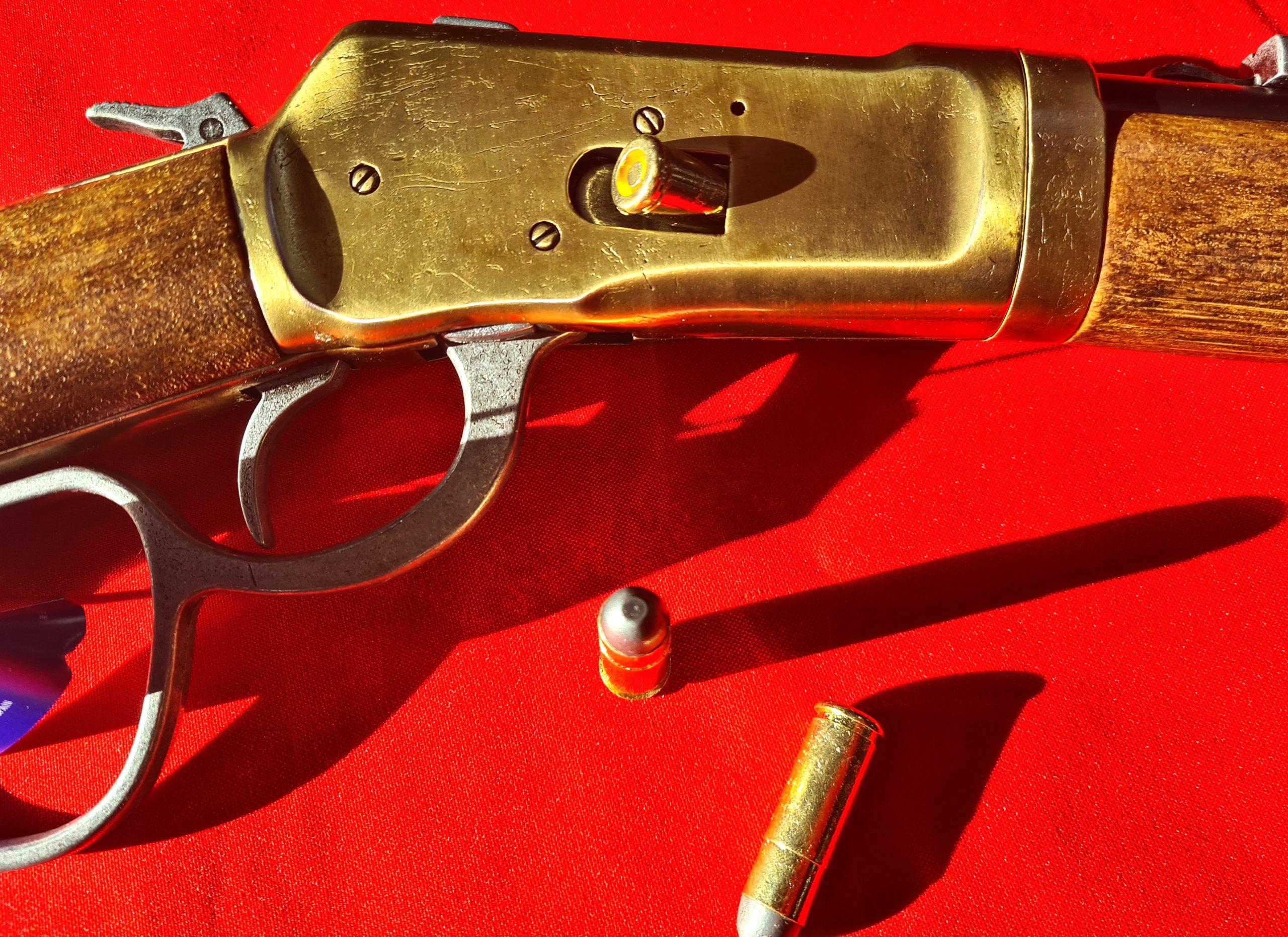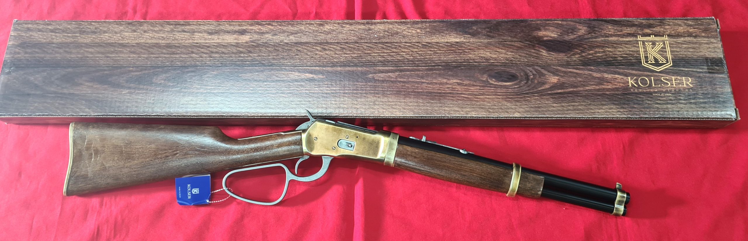 REPLICA WINCHESTER 1892 CARBINE BY KOLSER – BRONZE WITH FAUX WOOD HANDLE & STOCK – SHORT BARREL 82CM – 1059-1LX