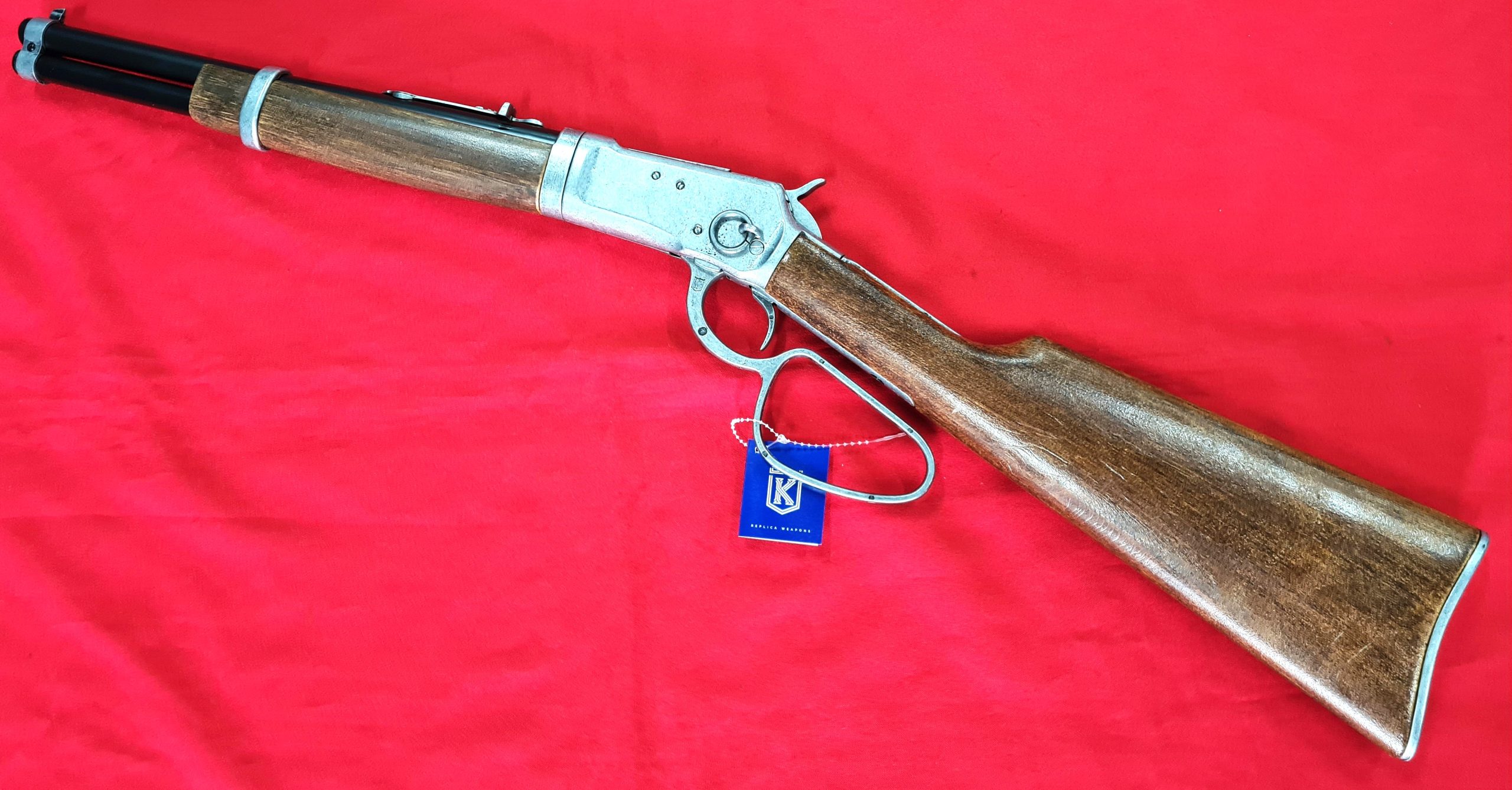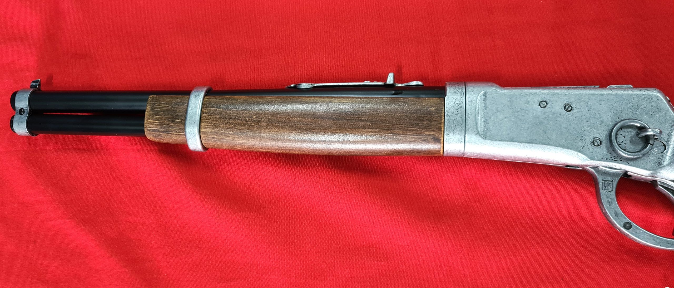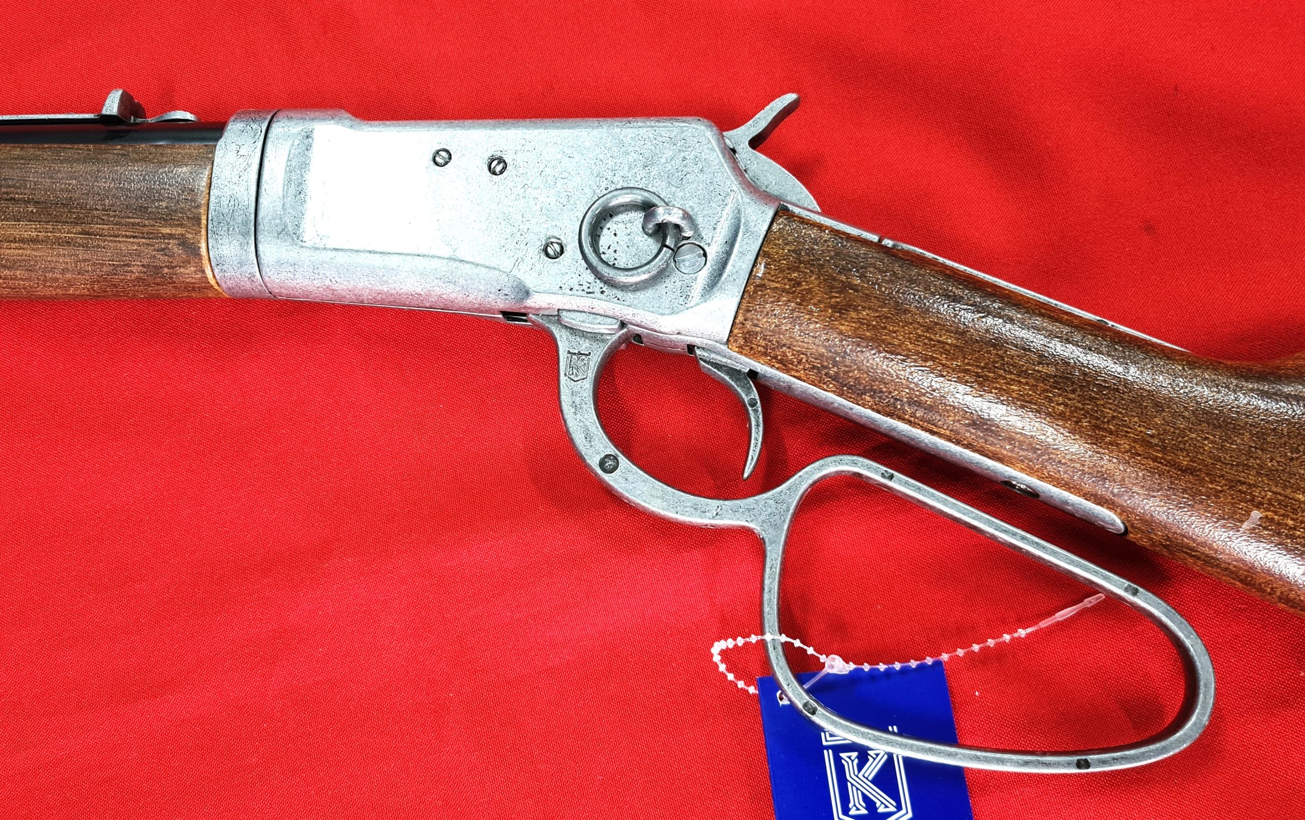 KOLSER WESTERN LEVER ACTION REPLICA RIFLE WINCHESTER CARABINE USA 1892 SILVER WITH FAUX WOOD HANDLE & STOCK – SHORT BARREL