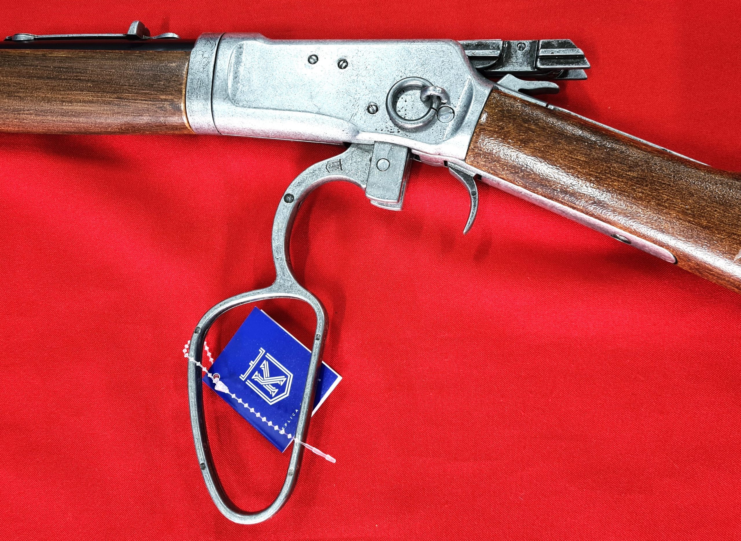 Made of metal and imitation wood polypropylene, it has a weight very similar to a real '92 Carabine rifle and has a galvanized finish of silver.