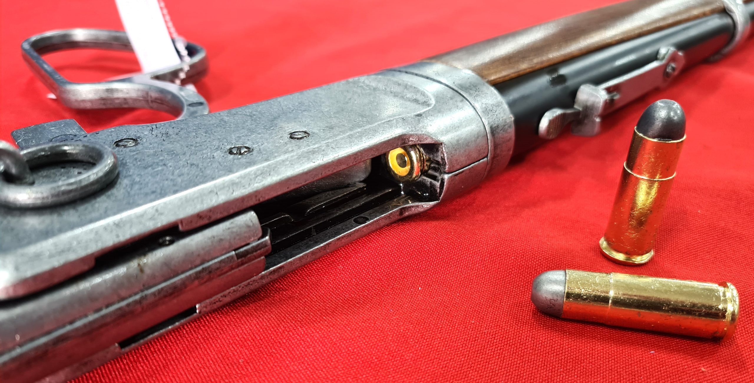 The Kolser replica Winchester Carabine rifle has a very similar weight and dimensions to the original Winchester, as well as a functional mechanism, a reloadable chamber and a bullet ejection system that provides, not only a faithful replica of the original, but also a realistic experience when operating it.