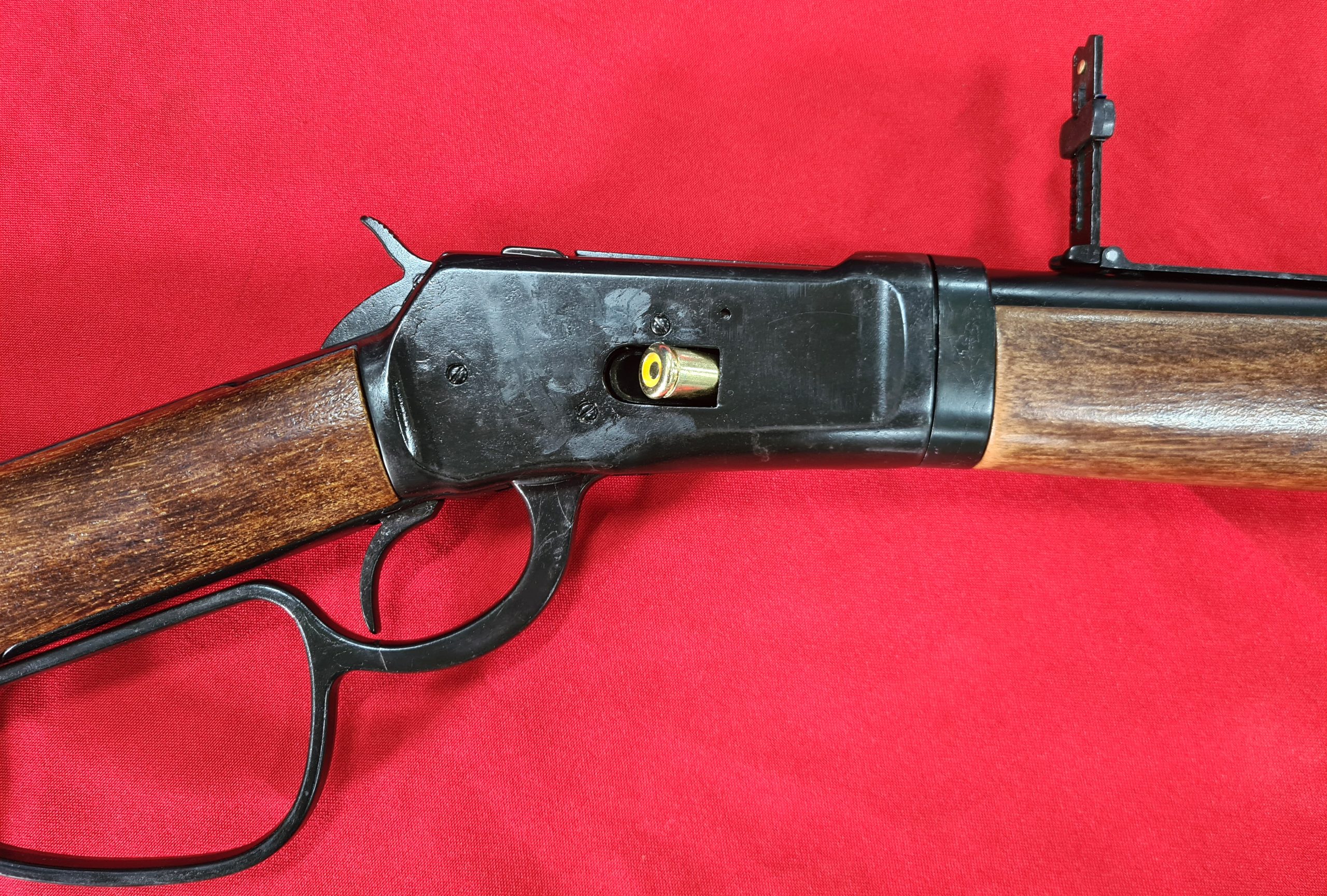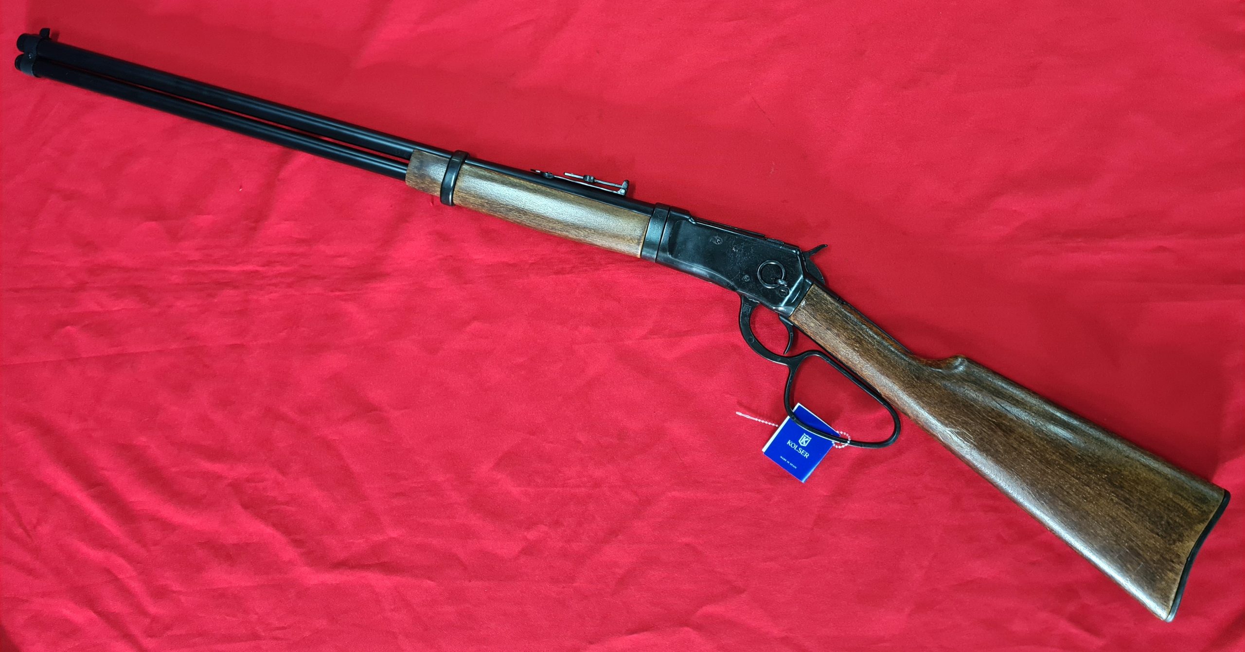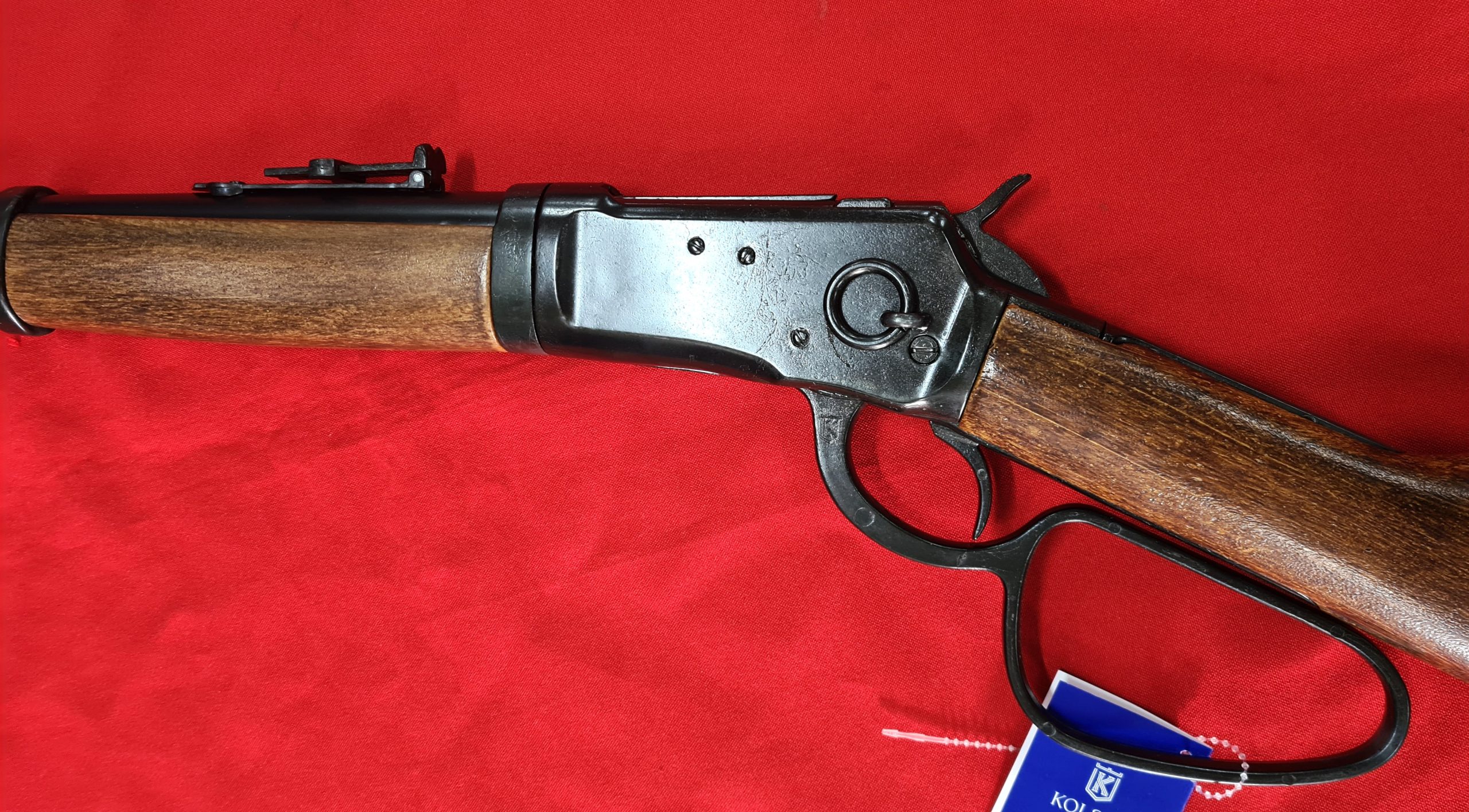 KOLSER WESTERN LEVER ACTION REPLICA RIFLE WINCHESTER WITH LADDER SIGHT USA 1892 BLACK WITH FAUX WOOD HANDLE & STOCK – LARGE LOOP