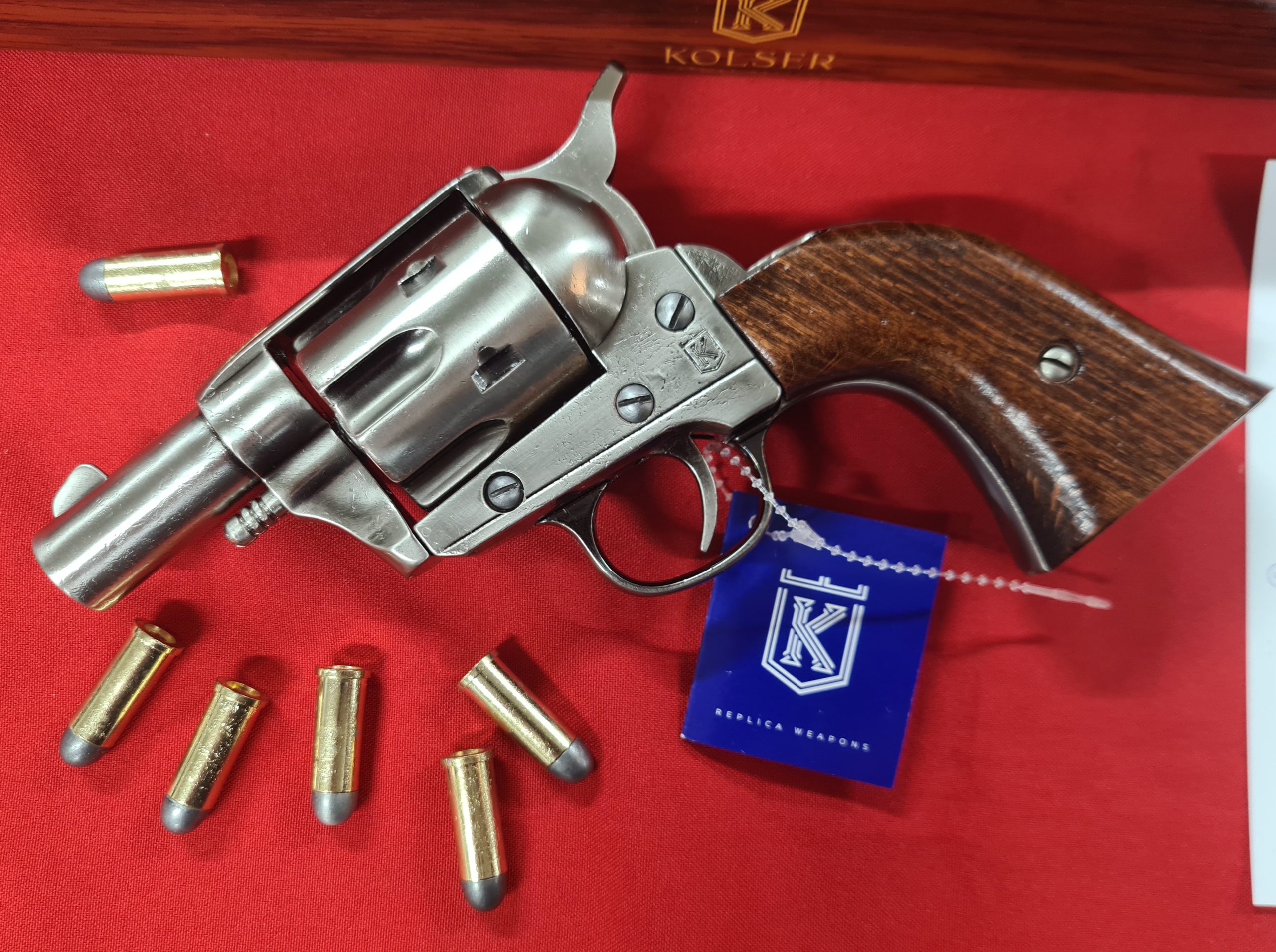 This item is a replica weapon. It is designed to resemble in shape, size, weight and basic functionality the firearm it replicates. It has basic working parts and or removable parts (check description) and is a genuine Kolser or Denix / Spanish made item. The replica comes in its factory card box.