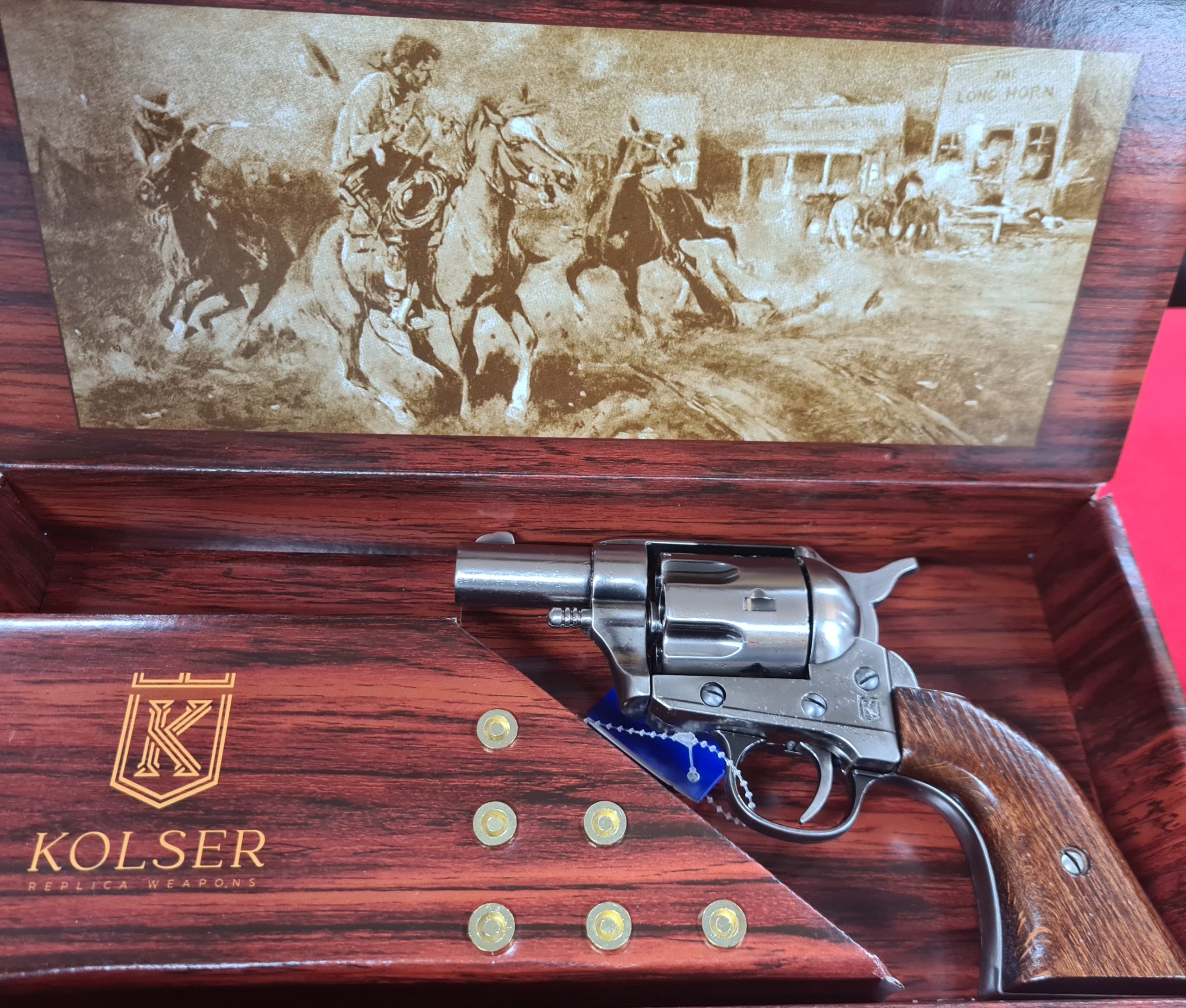 Kolser’s replica of the Colt Pocket USA 1873 is a compact gem inspired by the more discreet versions of the legendary Colt Single Action Army revolver. This piece captures the essence of the Wild West and is ideal for collectors, reenactors, and history buffs alike.