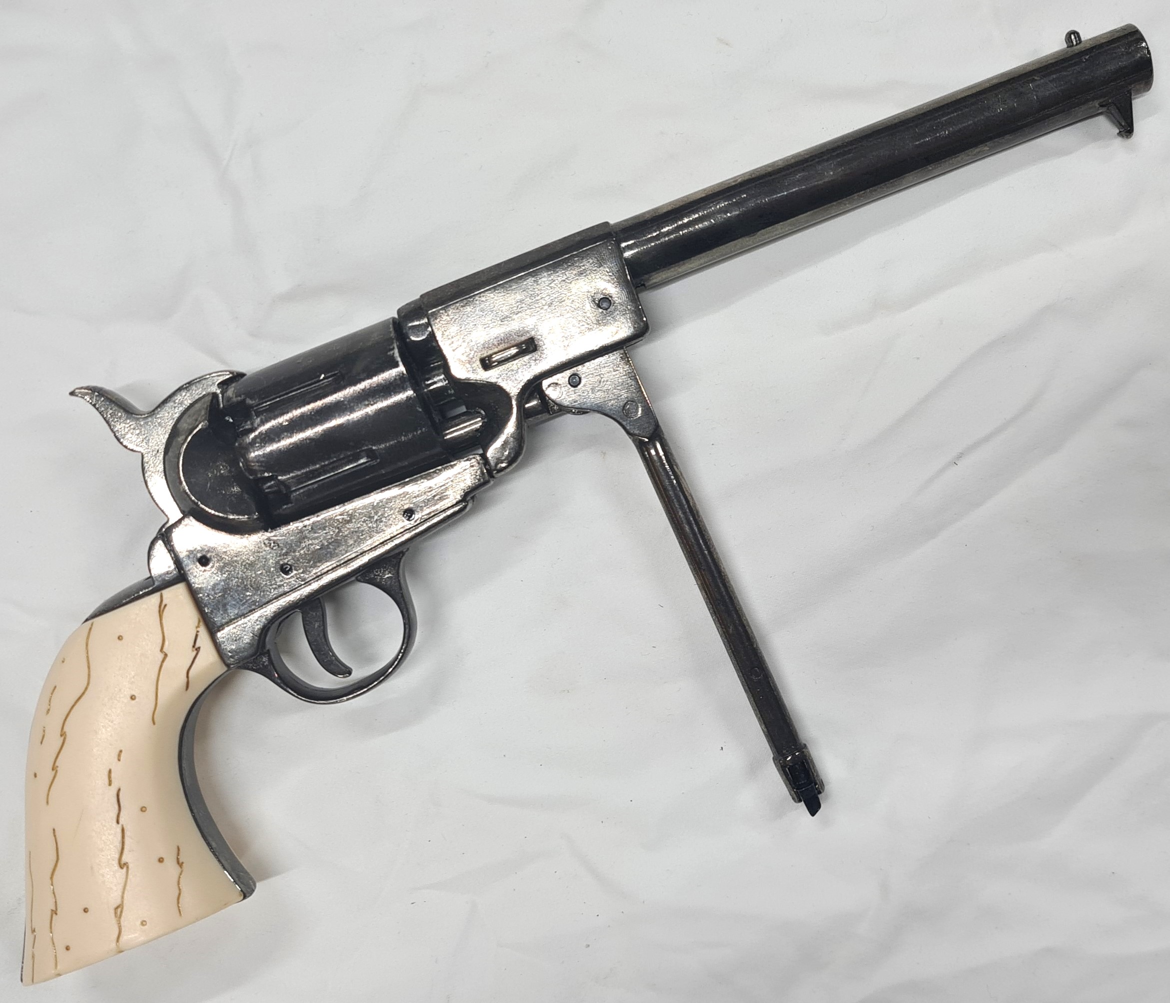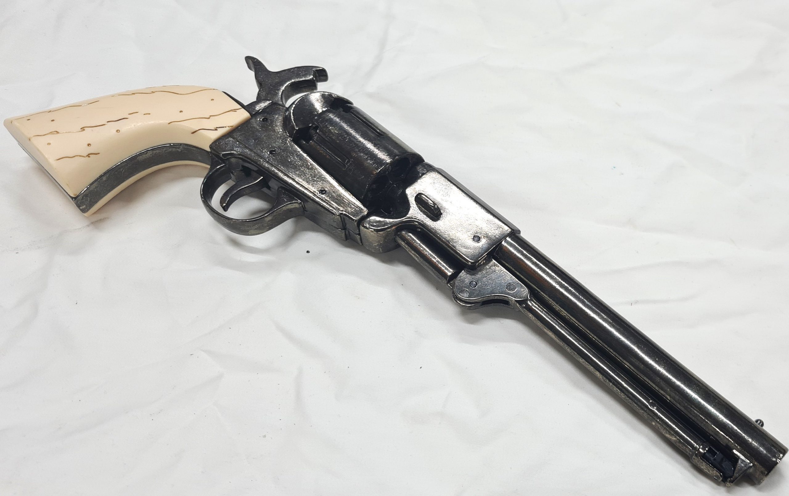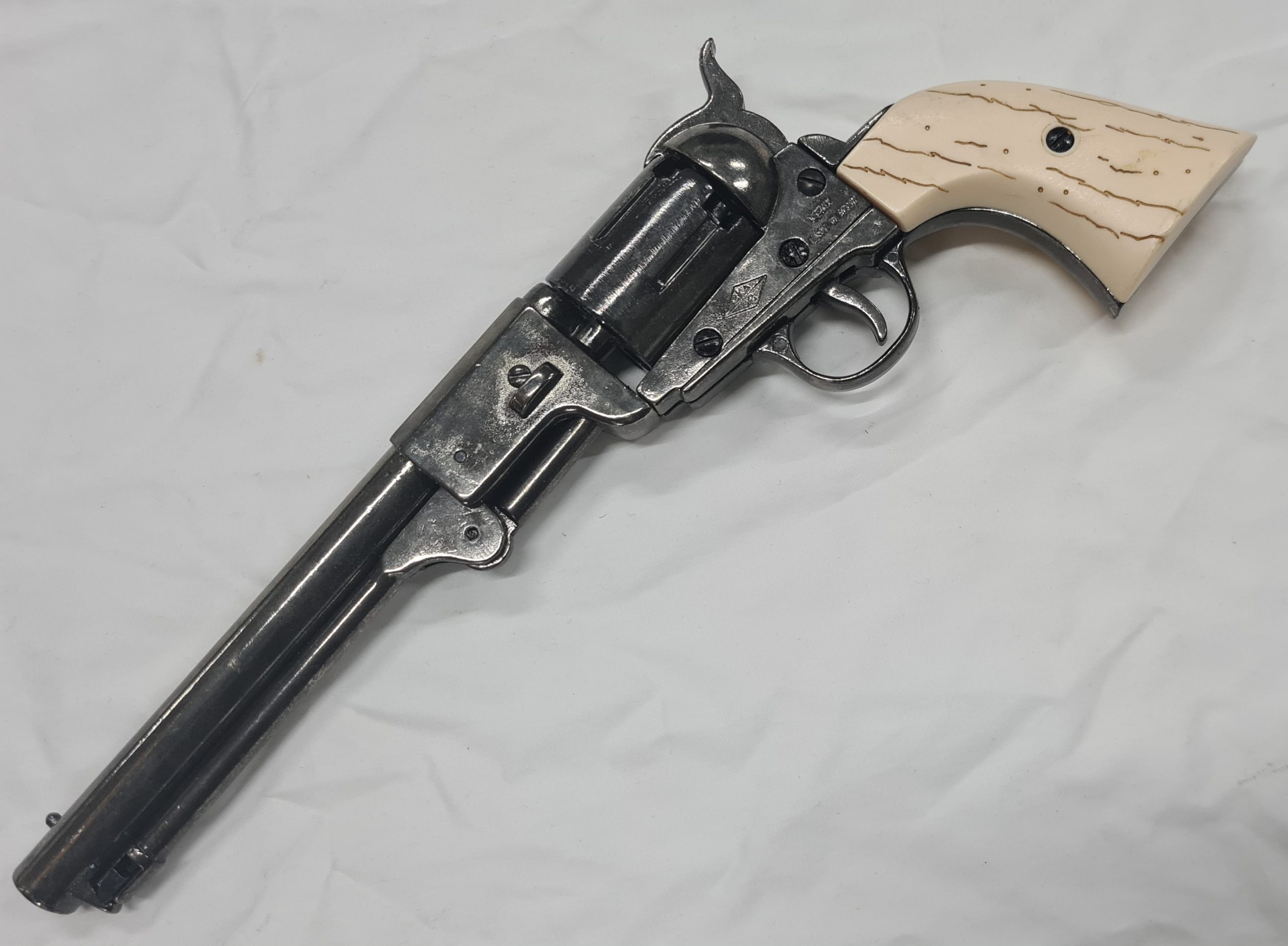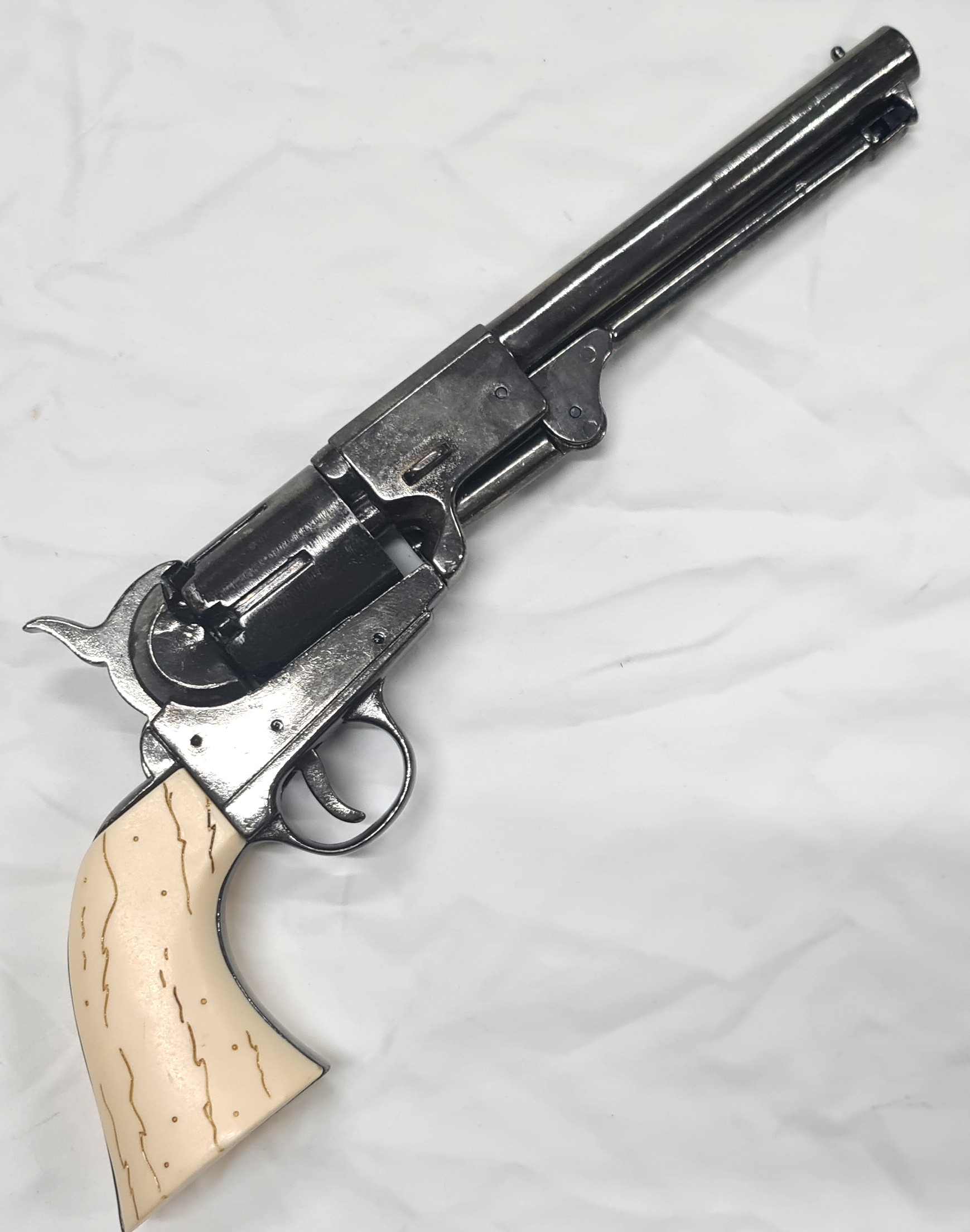 Offered is a superb Denix copy of the Griswold and Gunnison 1860 cap n ball 36/45 cal preferred by the Confederate Officers during the American with oil blue grey finished metal and faux horn/ ivory grips