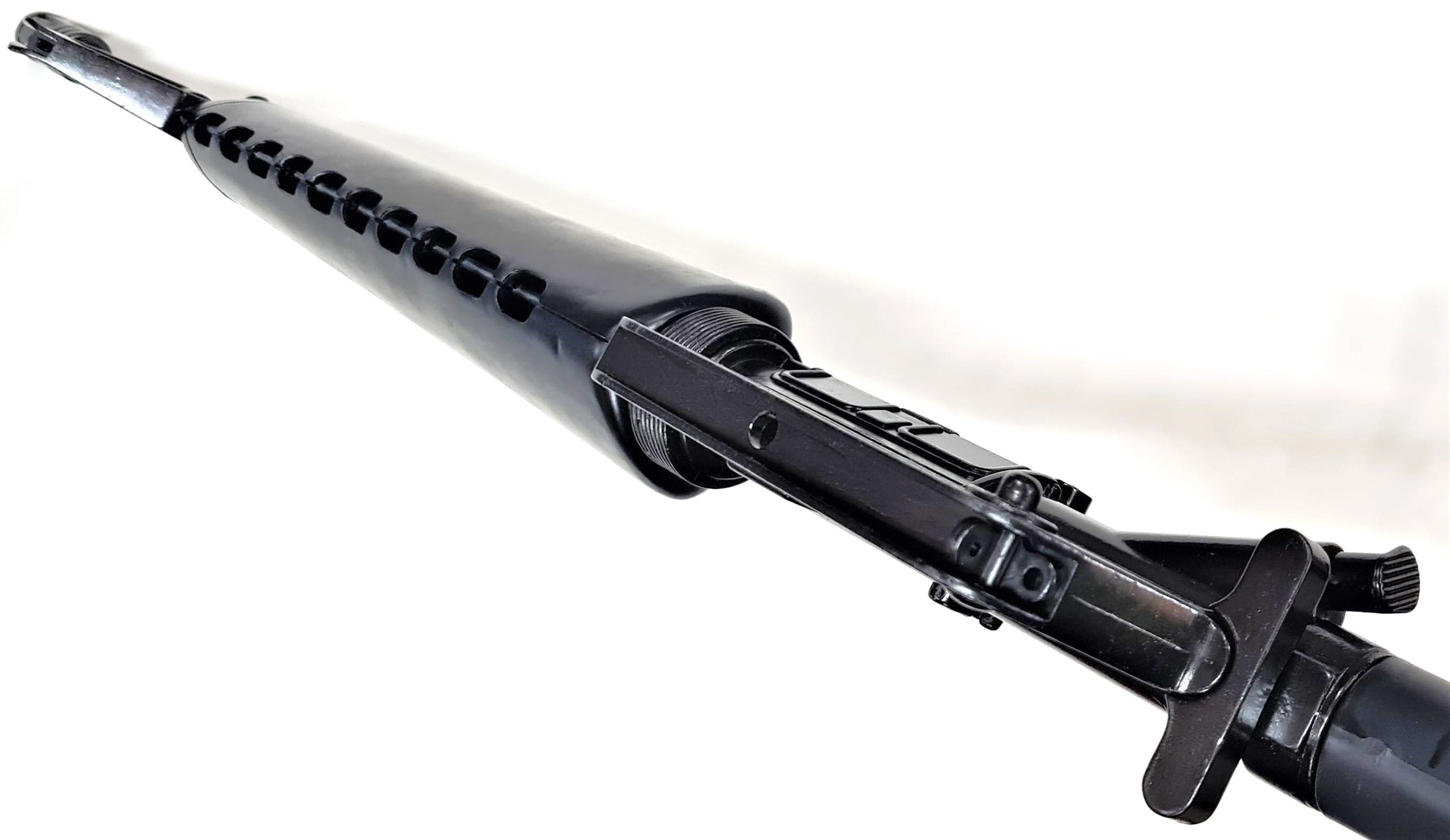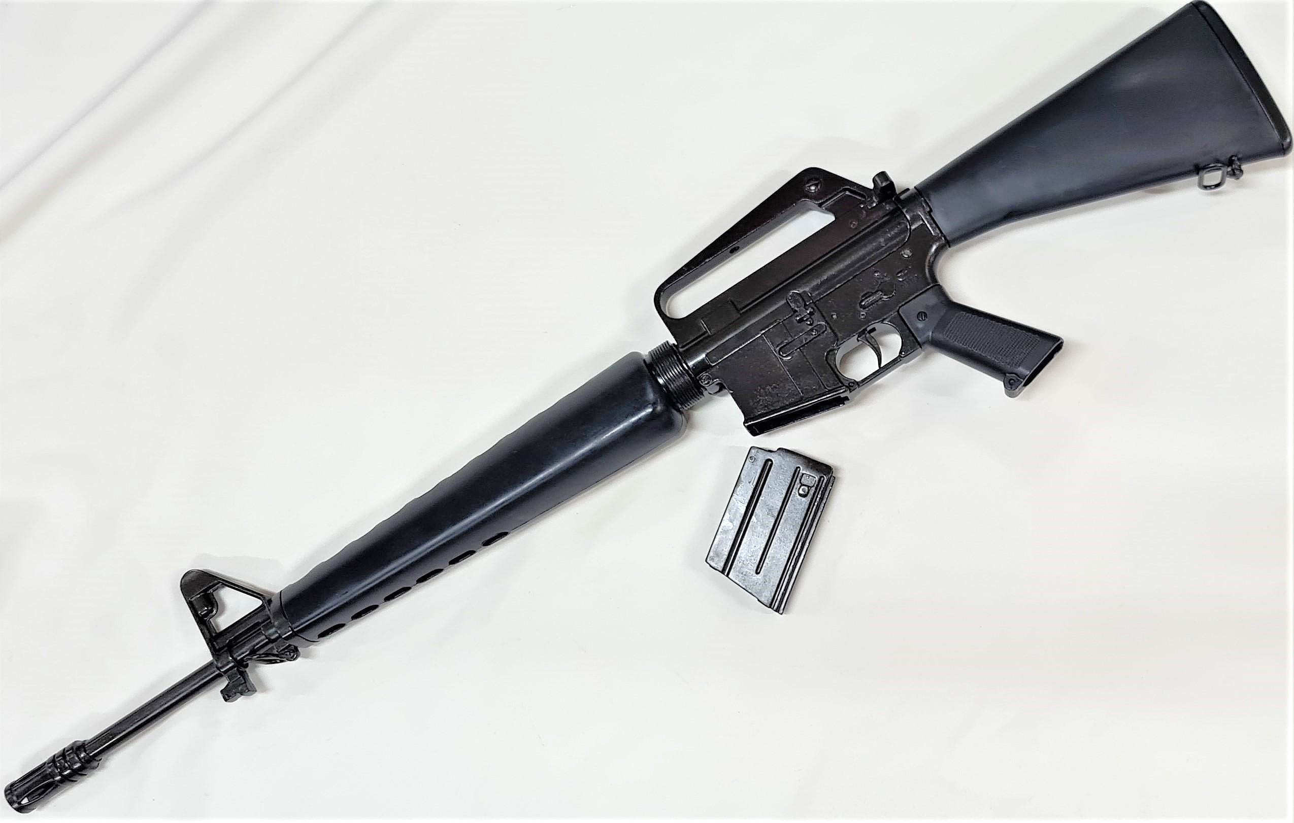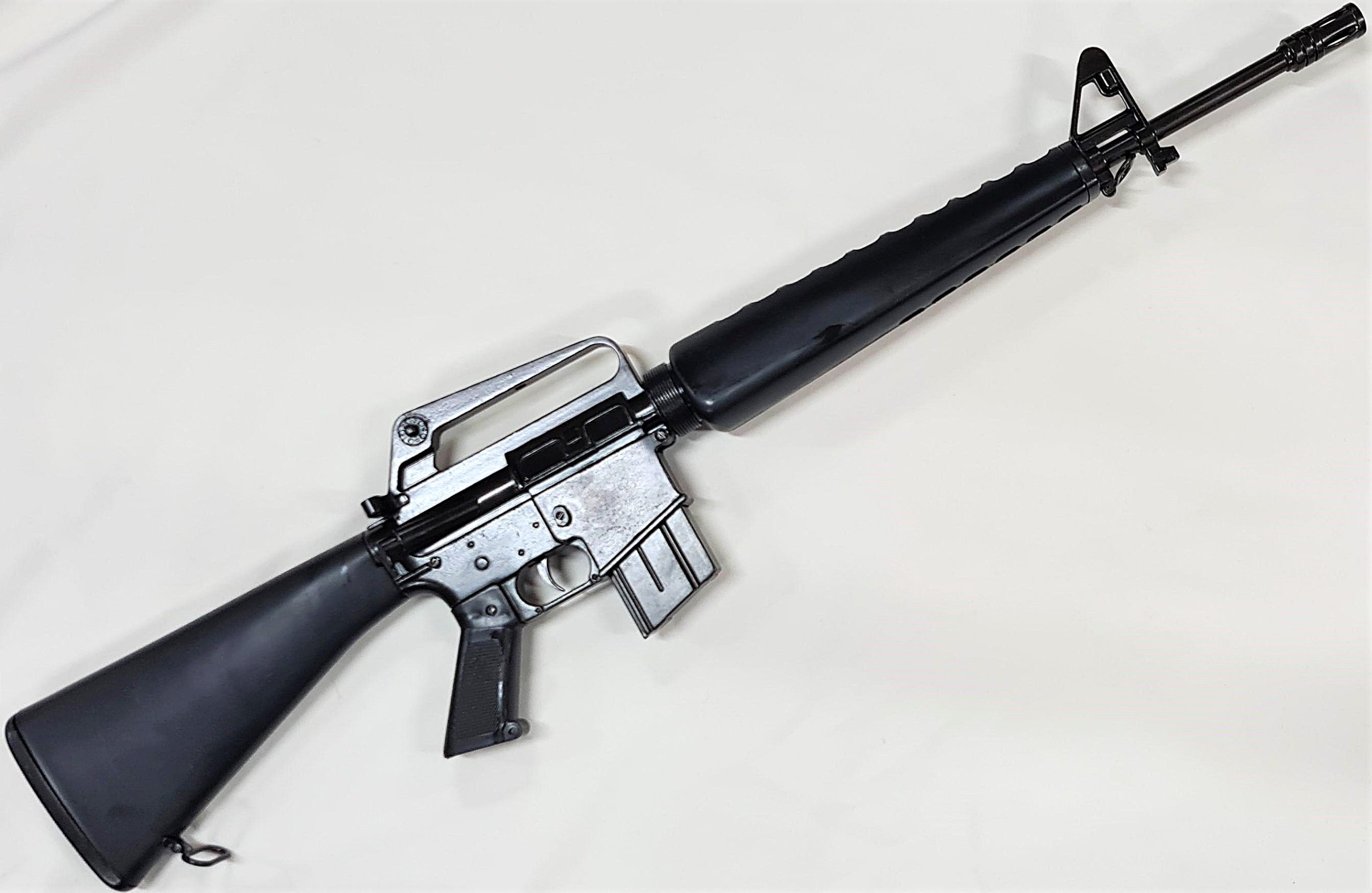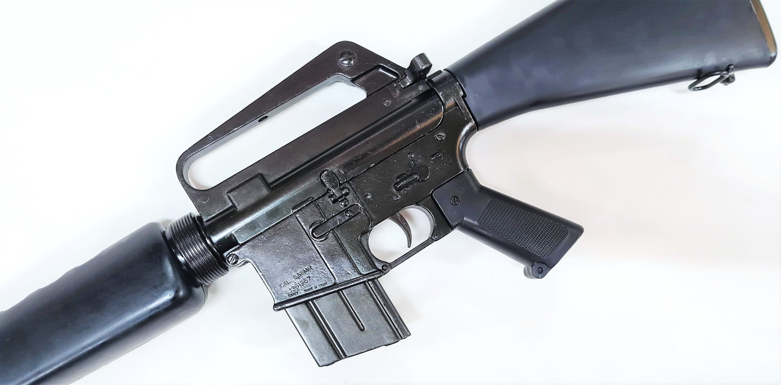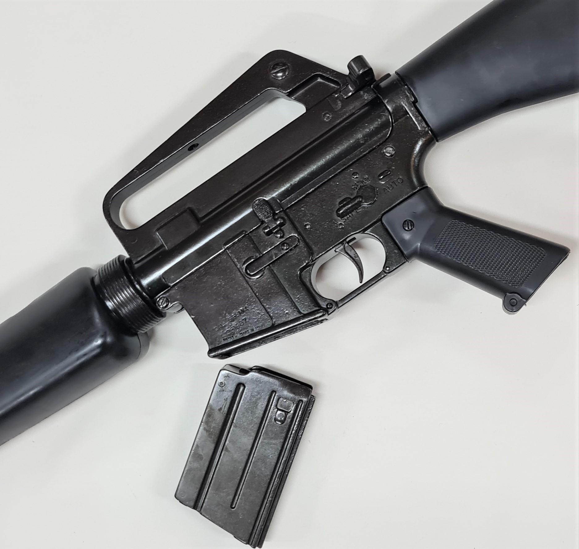 You can pull the cocking handle back and pull the trigger and the magazine catch release works to remove the 20 round magazine. Other switches like the fire selection do not move. This has the correct front hand guards and stock of the Vietnam period M16's. Great as a standalone or display piece. Dimensions: 98cm Weight: 3.335kg