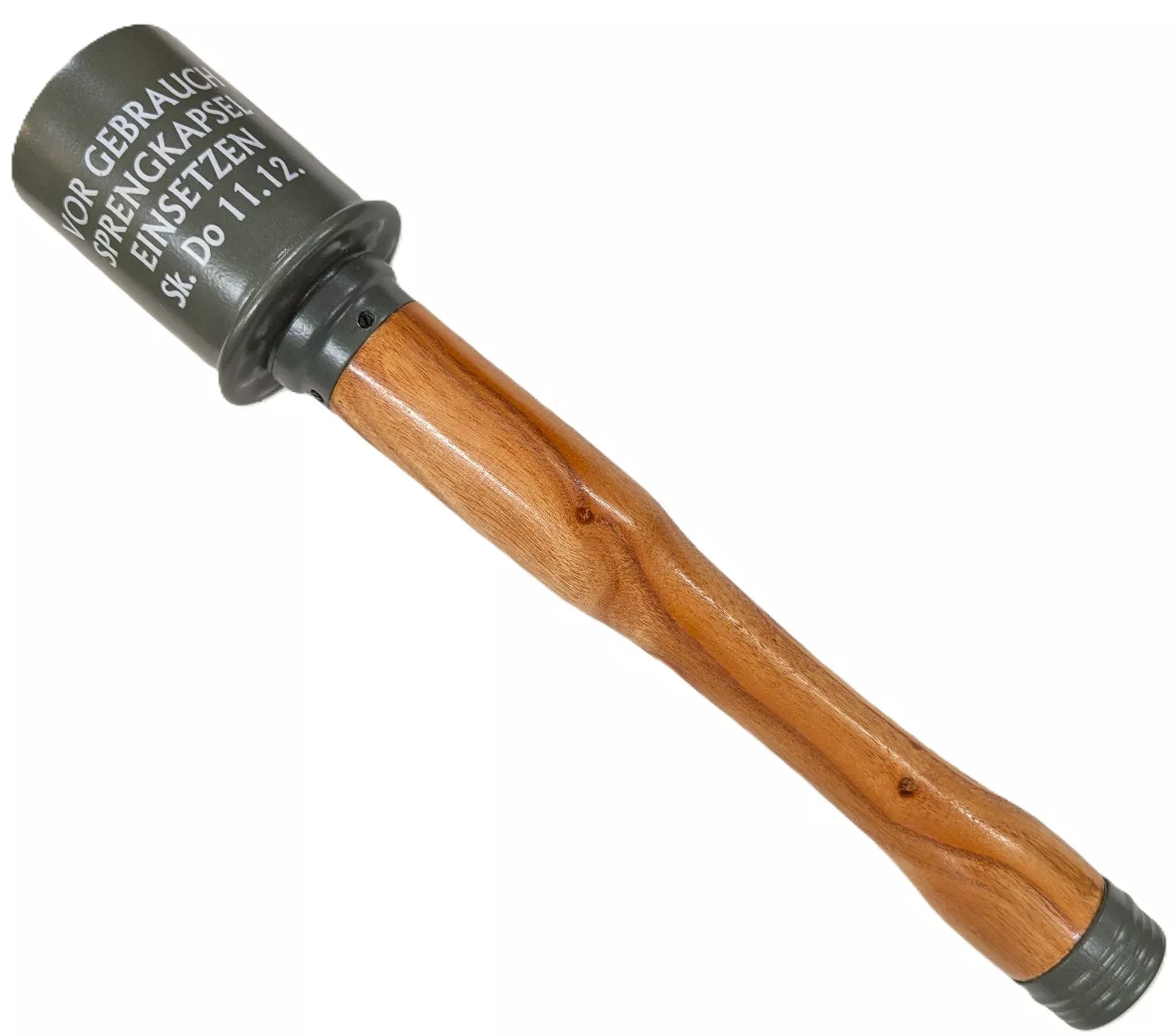 One of the most distinctive grenades ever, the Model 24 Stielhandgranate (lovingly named the Stick Grenade and the Potato Masher by the British Army) is one of the most easily recognized weapon of the 20th Century. Used prolifically by the German Army as their staple hand grenade from the end of World War I until the end of World War II, the Stielhandgranate was often used as a club during trench warfare!