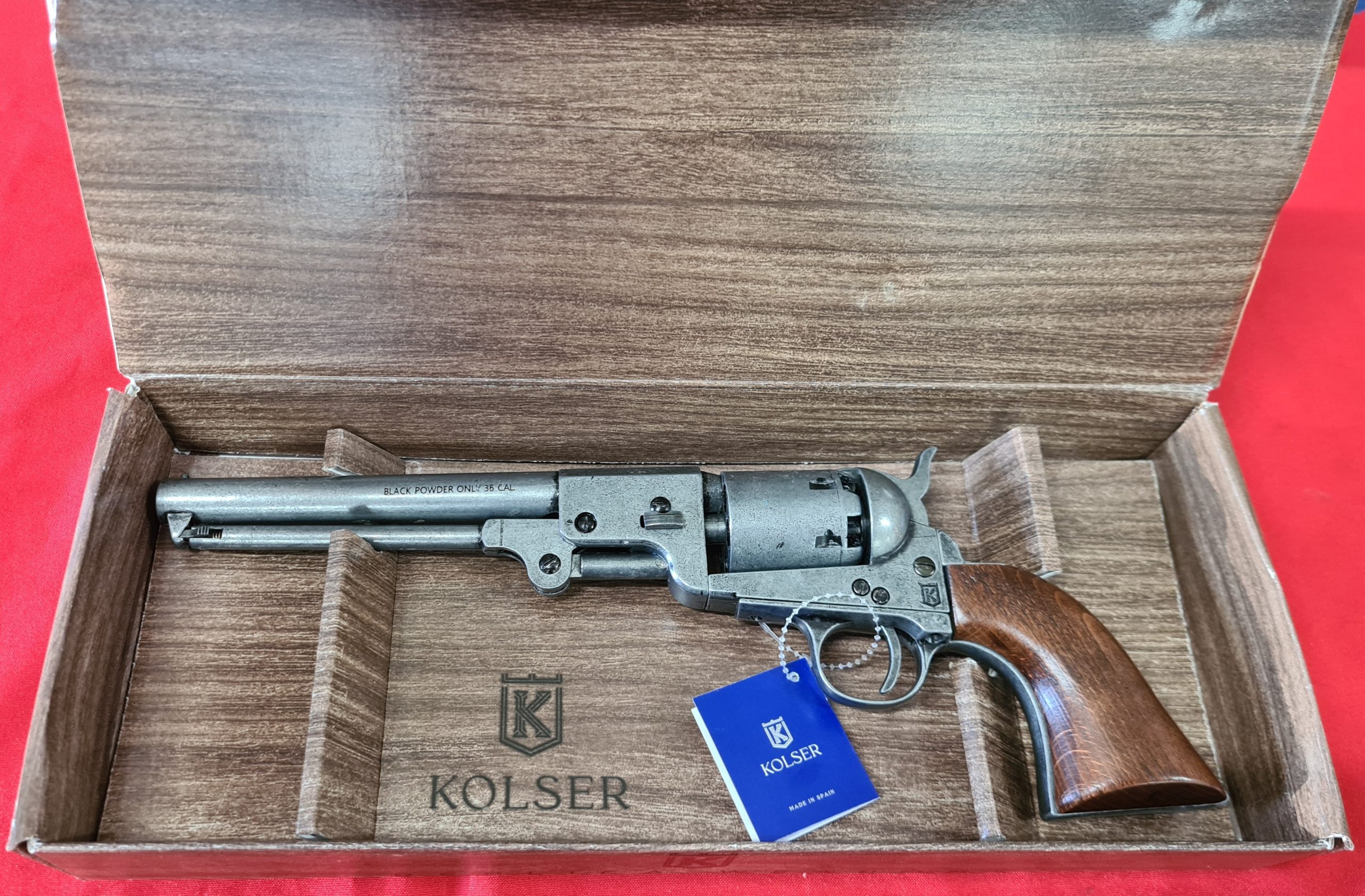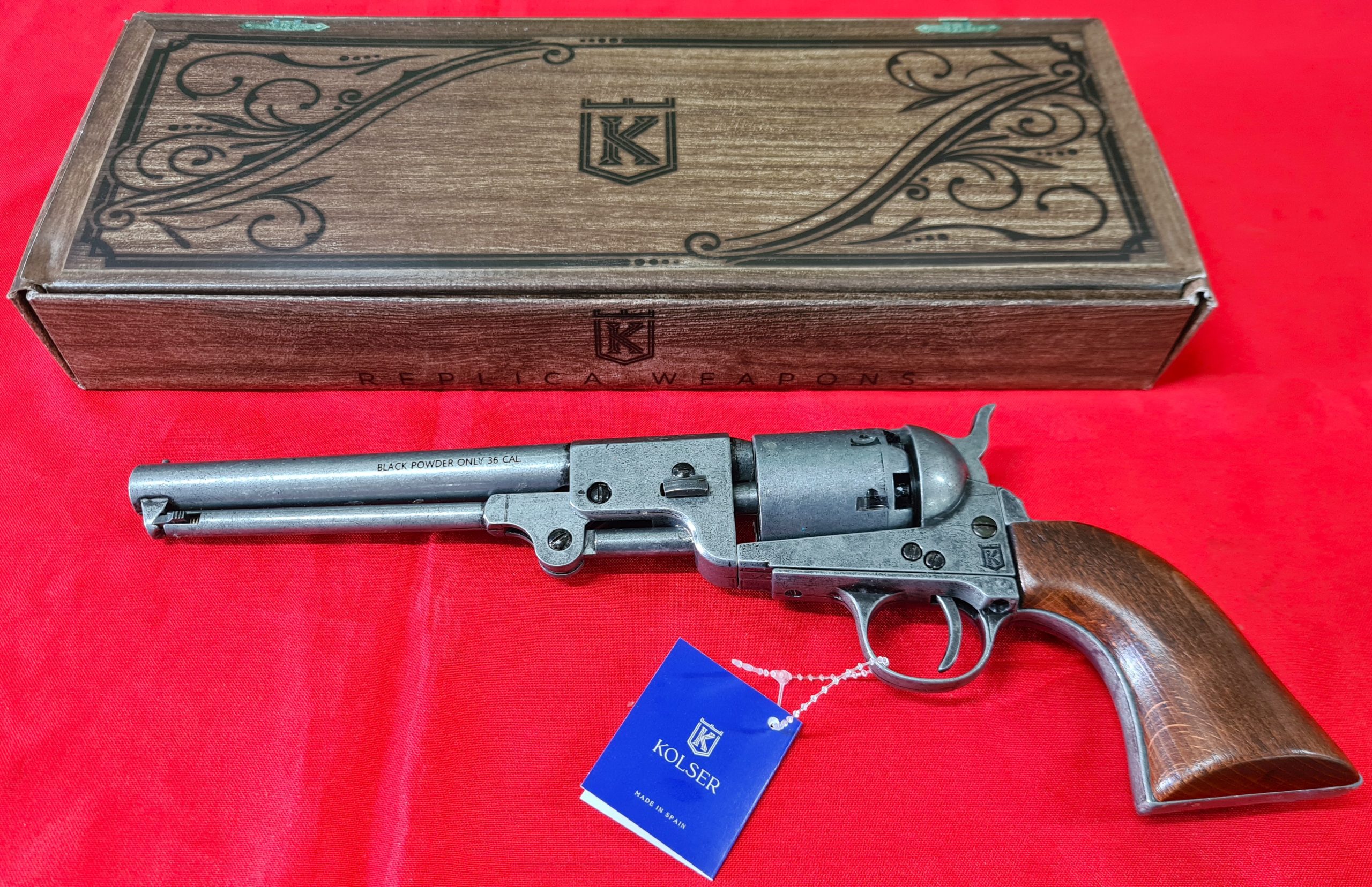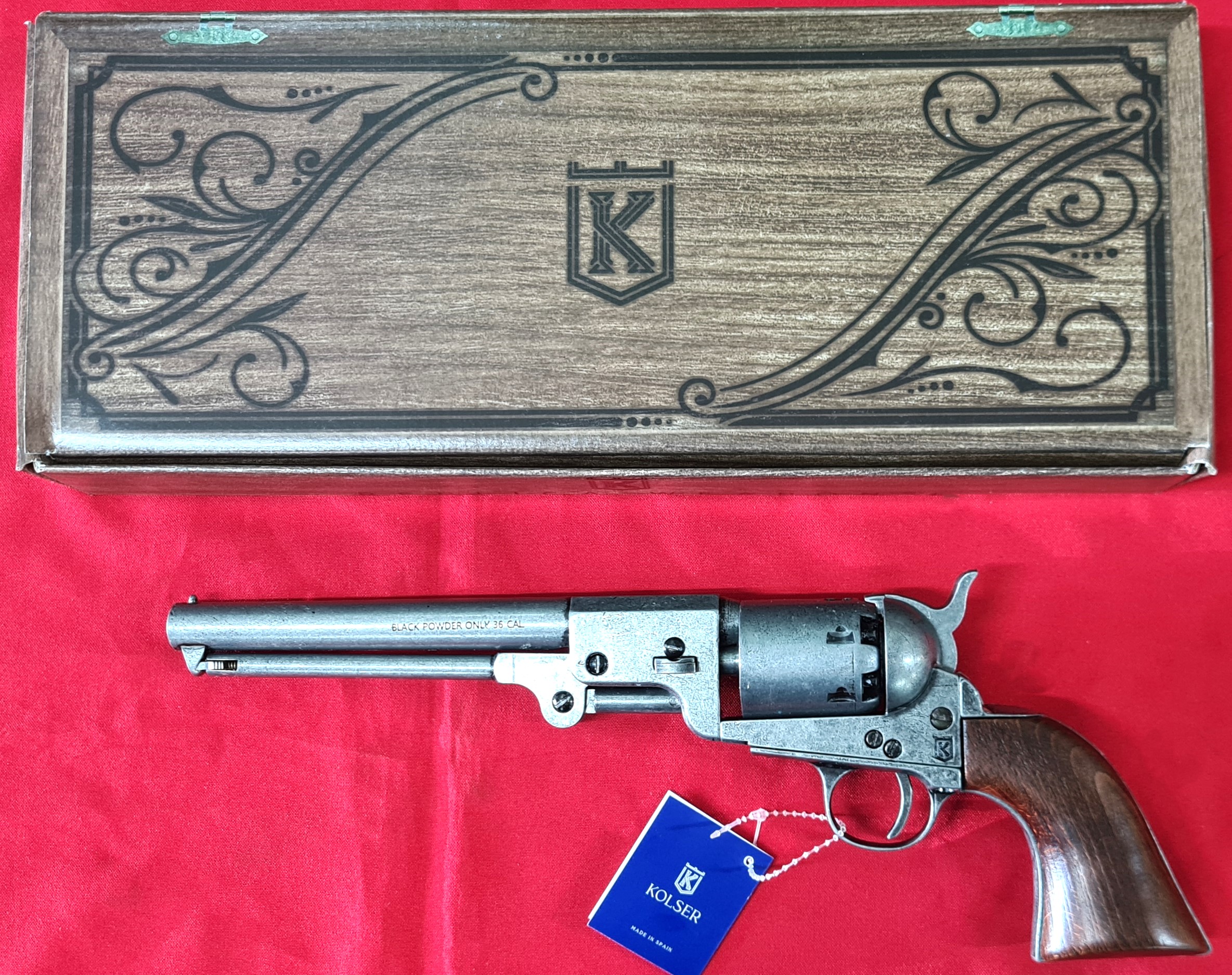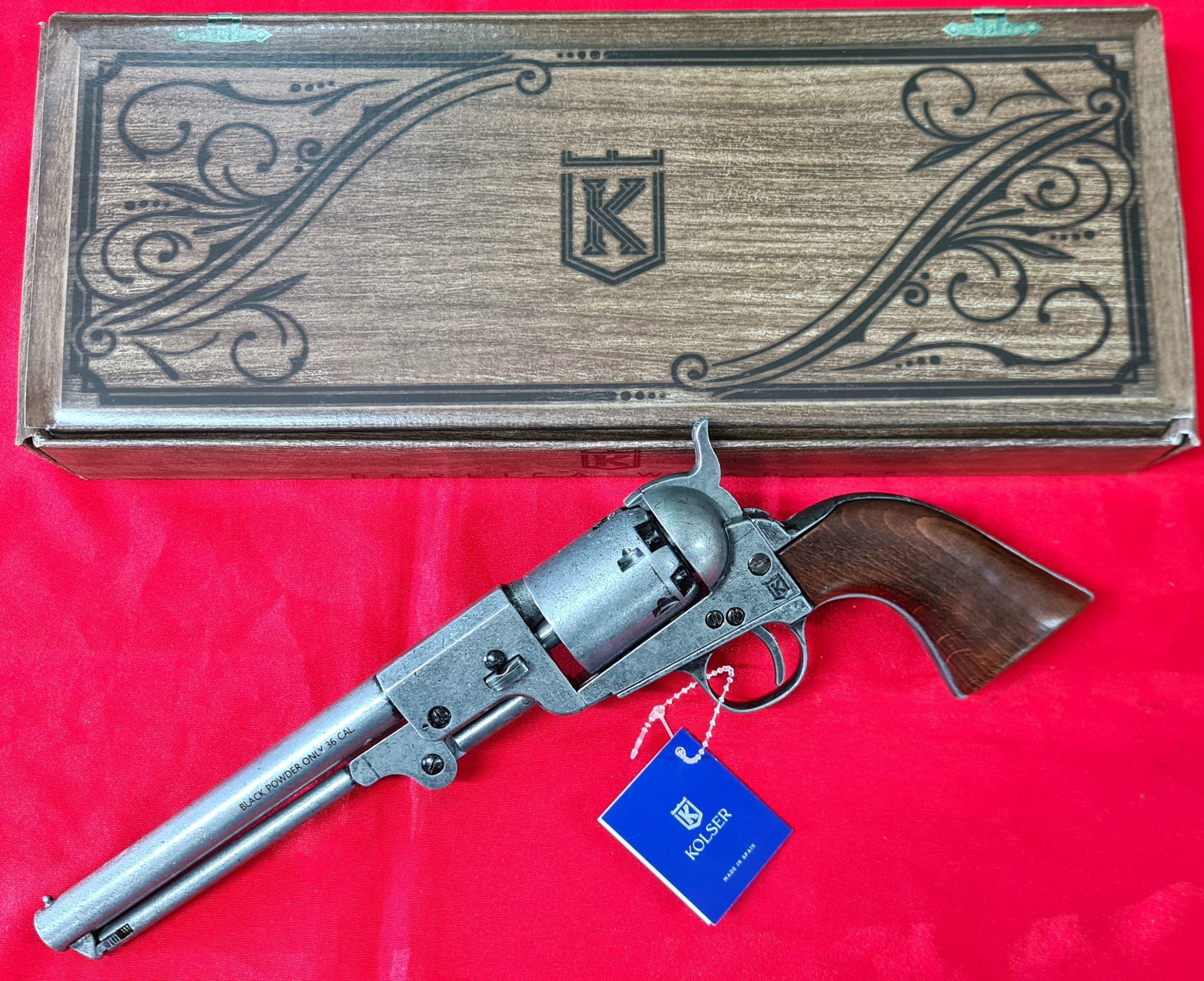 US Western Confederate 1862 Colt Navy revolver .36 pistol in antiqued grey metal with gift box by Kolser 8750-WP
