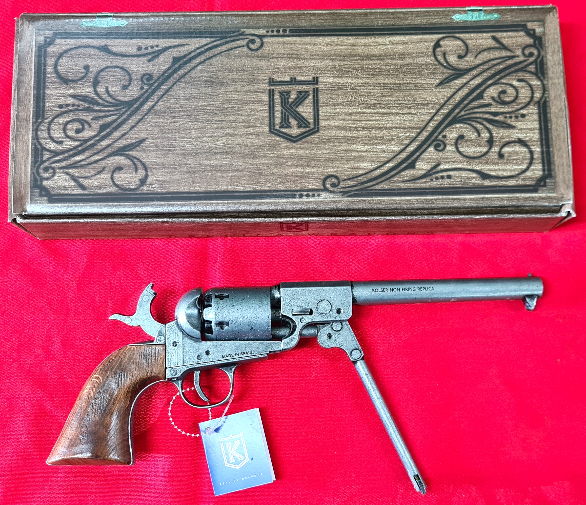 Kolser manufactures this article is of high quality, meticulously crafted with special treatments to evoke a realistic and immersive experience. Its solid metal frame, and wood or resin grips offer both historical accuracy and a comfortable experience.