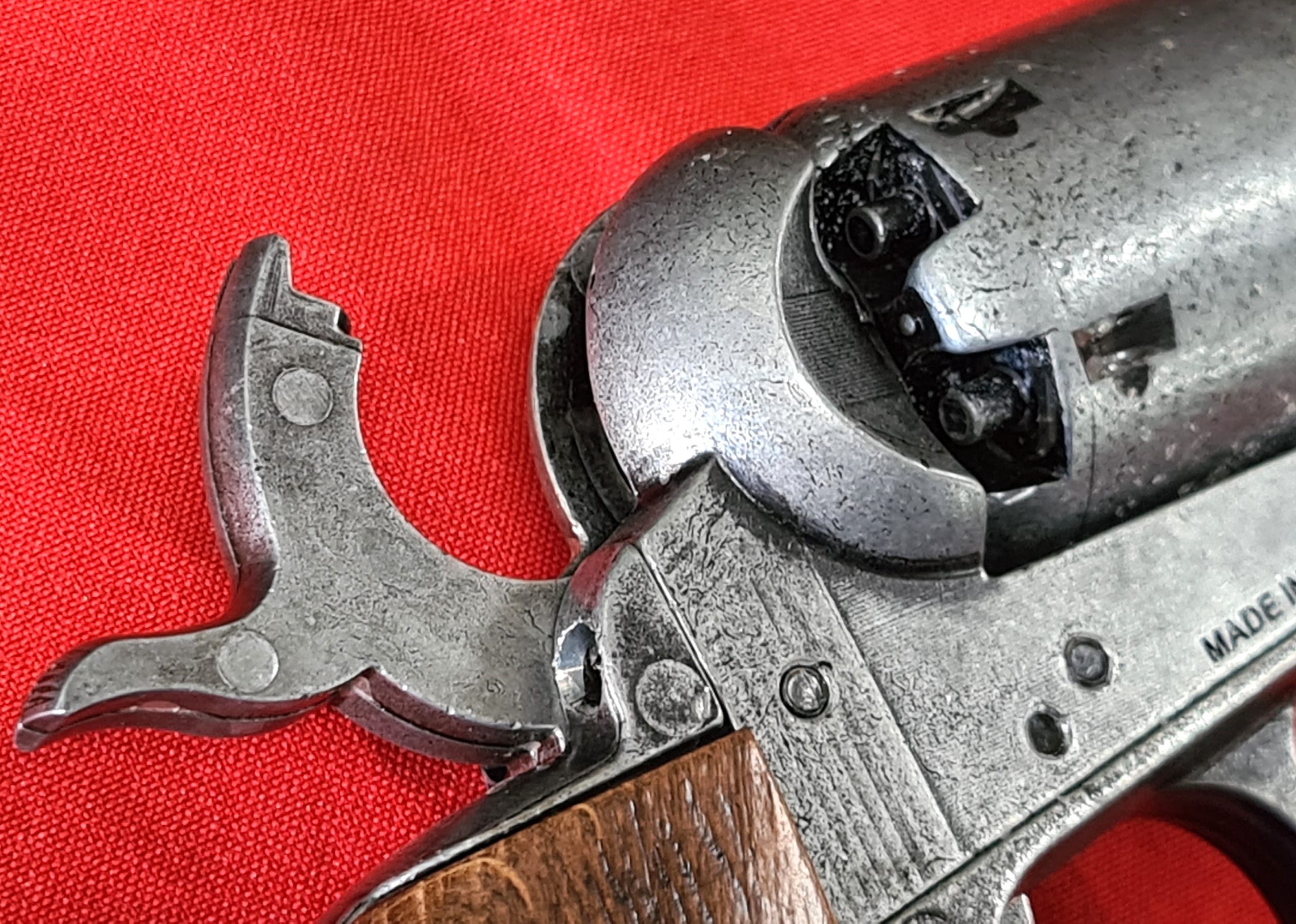 Kolser's Colt Navy replica mirrors the dimensions of the authentic gun, ensuring a faithful reproduction, while its weight closely matches that of the original. This replica features a functional three-position mechanism and a six-chamber cylinder and it has been adapted for caps.