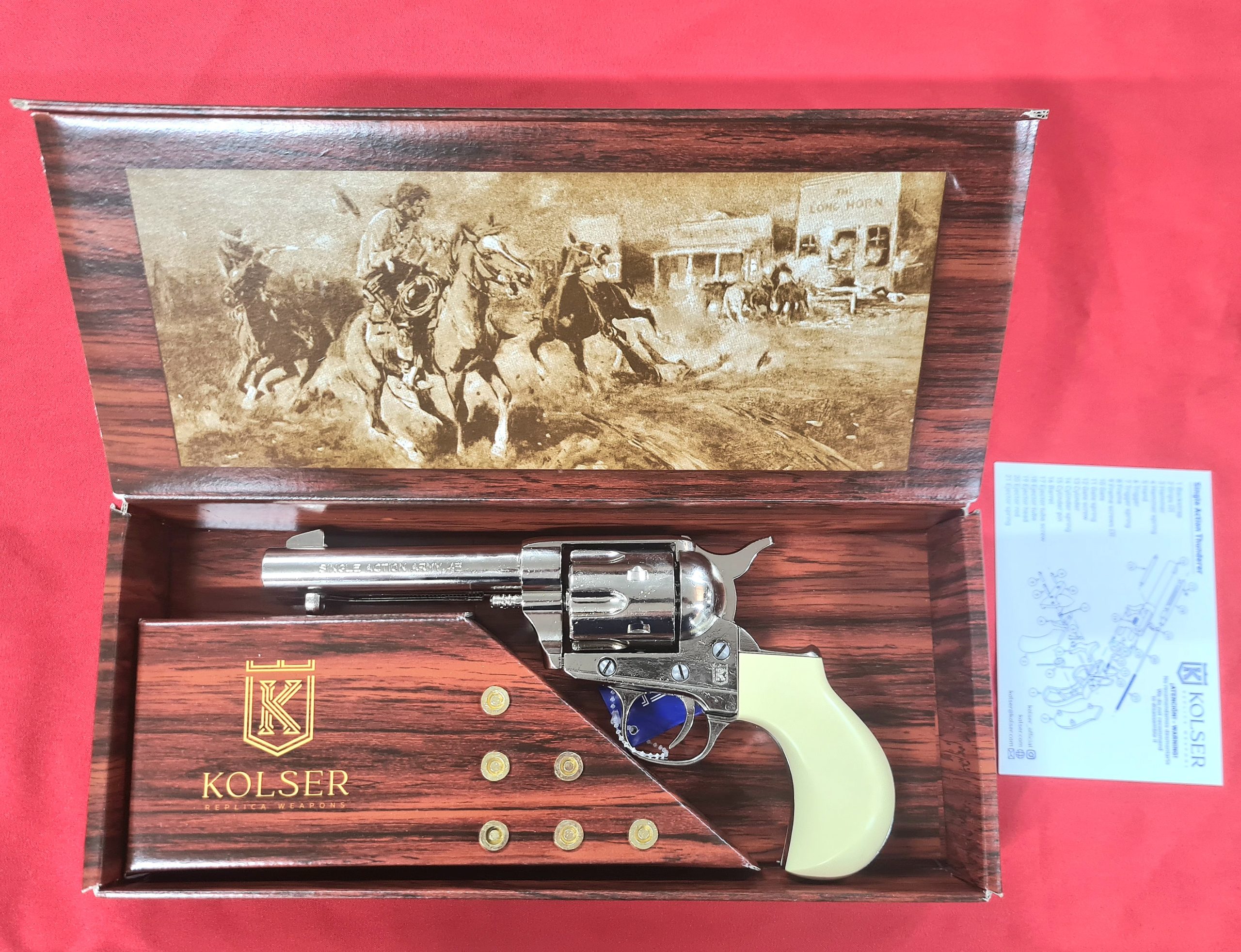 This item is a replica weapon. It is designed to resemble in shape, size, weight and basic functionality the firearm it replicates. It has basic working parts and or removable parts (check description) and is a genuine Kolser or Denix / Spanish made item. The replica comes in its factory card box.
