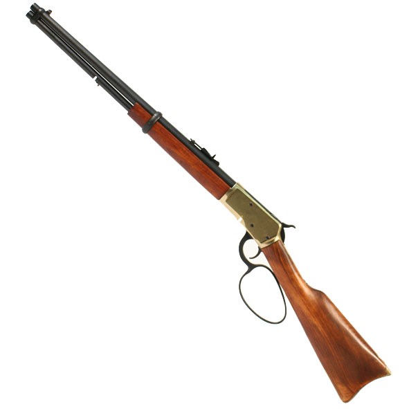 The classic Winchester 92 carbine with the large loop lever that was seen in the film "True Grit". This is a replica of the Model 92 Winchester carbine that was used by John Wayne in several films including "True Girt" where he played the legendary character "Rooster Cogburn".